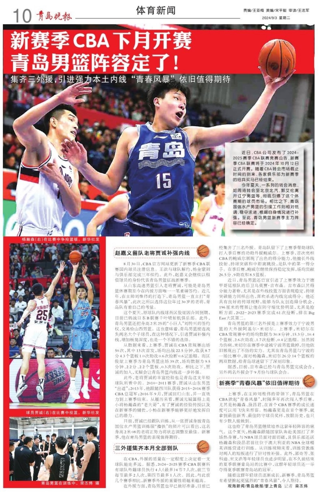新赛季CBA下月开赛 青岛男篮阵容定了!