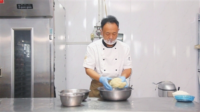 日前,记者来到这家企业的食品加工车间看到,糕点师傅换上工作服,经过严格的消毒环节后,开始了一天的月饼制作。在工厂外,欣发月饼第四代传承人窦鑫,正在招呼进料的师傅们,准备月饼的配料。