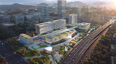 崂山区人民医院鸟瞰效果图。