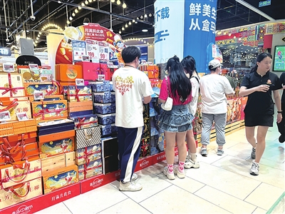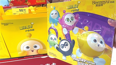 适应消费者的需求,月饼礼盒也推出了年轻化的盲盒版,在高新区一家丽达商场的月饼礼盒区,抱抱熊、小熊维尼、蛋仔等青少年喜欢的动画形象也印在了月饼礼盒上。“这些卡通图案的月饼礼盒,也就是你们小孩子喜欢。”市民张女士拿起黄色外包装上画着可爱的蛋仔形象的月饼礼盒,对身旁的女儿说道。记者看到,一盒净重420克售价98元的《蛋仔派对》IP合作款食滋源欢乐糕点礼盒中,包含巧克力酥、金桔凤梨酥、红豆蛋黄酥和奶酪蔓越莓酥等多种口味,不仅有月饼可以吃,还赠送《蛋仔派对》精美书签和贴纸。