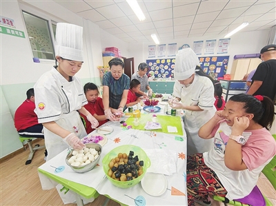 中秋节假期,青岛仁爱学校组织开展中秋体验活动,让学生在轻松愉快的氛围中,感受中秋月圆的思念之情和祝福之意。学校还邀请了青岛烹饪职业学校中西面点班的学生志愿者,与该校学生一起制作冰皮月饼。