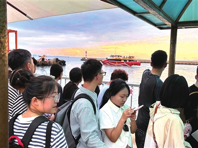 中秋假期新开辟的轮渡环游胶州湾航线创下单日载客约7000人次的纪录。