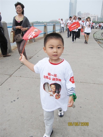 2008年首届“捐一元”活动在青岛举办时,杨学森还在妈妈楚女士的肚子里。楚女士回忆道:“我当时正在五四广场附近散步,正巧碰上了‘捐一元’举办的公益健步行活动。大家在积极参与运动的同时,也在传播公益的理念。我当时就觉得这个活动真好,以后我也要带着孩子一起参加。”2009年,杨学森出生,从孩子懂事起的每年夏天,楚女士都会带着孩子参与“捐一元”,公益的种子在幼儿时代的杨学森心中生根发芽。