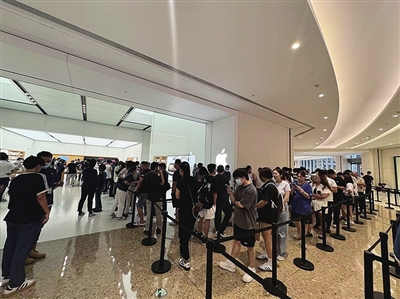 为迎接新品发售,苹果零售店延长营业时间,营业时间从原本10时,提前至8时,但依旧抵挡不住市民们对新品的热情,早上7时不到,店门口便排起了长队,前来取预订手机的市民络绎不绝。记者了解到,苹果在发布会结束后便开启了线上预售,很多消费者在当天晚上8时开始抢购,部分热门机型在十分钟内便已售罄。现场取货的市民李先生就是其中之一,他分享道:“我今天专门请了假,早上七点就来了。新款苹果手机特别吸引我,特别是相机功能和全新设计,所以无论如何要抢到第一批货。”