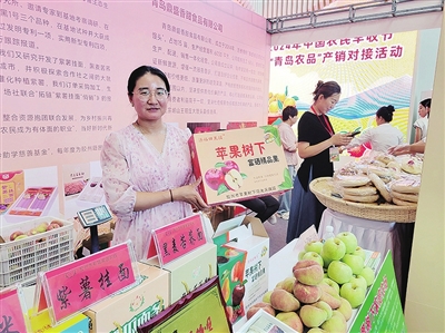 “我爸爸去年第一次过来参展,今年我也跟着来了,我们是家庭农场,有160亩地,今天主要带来的水果是明月苹果和蟠桃。”来自胶州的李清华是第一年带着多种农产品来参展,明月苹果零售每斤6元,比去年低了2元。蟠桃每斤5到6元,这两种应季水果很受欢迎。“我们都是免费参展,机会很好。”李清华的父亲李丕济种了十年苹果,他希望在本次展销中,能找到高档水果销售店作为新的客户。
