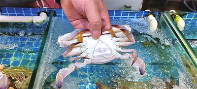 记者在采访中注意到,不少水产行都在摊位中标明自家的螃蟹是本地蟹。国先生介绍,相比南方来的梭子蟹,本地梭子蟹的肉质更加鲜美,更受青岛人的青睐。