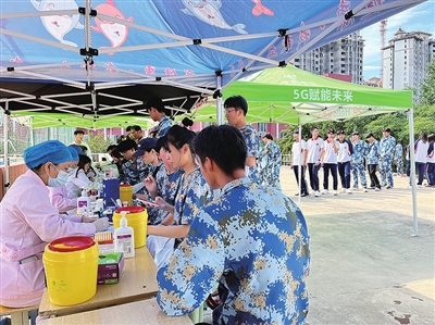 广大师生积极加入无偿献血的队伍。献血现场,参与者自觉排队,在志愿者的指引下有序填写献血登记表格。通过健康征询、体检和化验,符合献血条件者纷纷登上献血车。当天共有426位师生参与活动,累积献血量137700毫升。