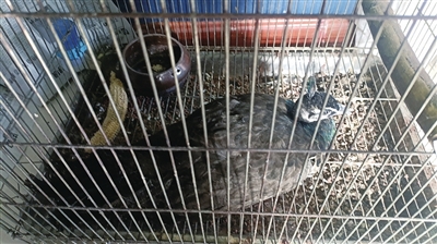 9月23日上午,城阳公安分局民警训练基地民警在训练场围栏内发现一只大鸟。民警立刻联系了森林警察大队,经过仔细辨认后,确认这是一只雌性蓝孔雀。