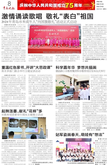 本报9月30日讯 近日,市北区海安幼儿园邀请退役军人走进课堂,教小萌娃们学站军姿、齐步走。市北区乐安路幼儿园的小萌娃们则纷纷变身小小艺术家,用自己稚嫩又充满爱的小手折飞机、画春天,以此向祖国献礼。(观海新闻/青岛晚报/掌上青岛 记者 于娜)