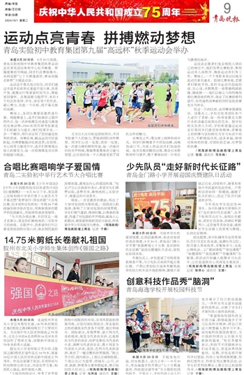 本报9月30日讯 9月30日清晨,青岛实验初级中学教育集团秋季运动会在青岛国信体育中心拉开帷幕。伴随着集结号响起,同学们在赛场集合,共同迎接“七十五载逢盛世,青春助跑启新程”主题运动会。