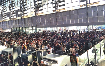 国庆假期,青岛北站人潮涌动。