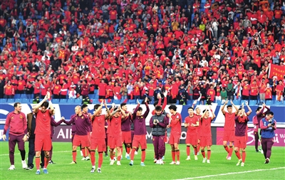此外,几位“红脸”球迷也是现场焦点,他们全脸刷成红色,绘有五星红旗,十分醒目。“我们是杭州球迷,驱车十多个小时来青看比赛。”张先生是其中一员,他告诉记者,自己和兄弟们是从2016年世界杯预选赛开始关注国足,从此成为忠实球迷,国足主场的比赛几乎一场不落,从南到北始终追随。“将脸涂成红色是我们想出来的创意,灵感来源是京剧脸谱。”每次比赛前,张先生和朋友们都会互相用京剧油彩仔细描绘,在观众席留下一抹别致的“中国红”。