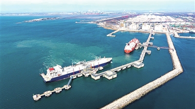 董家口港区中石化LNG接收站码头。