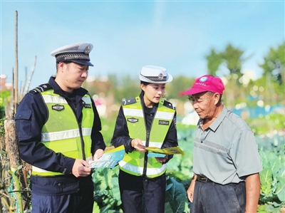 莱西交警将交通安全知识送到田间地头。