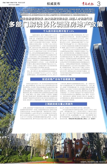 23日,市政府新闻办召开青岛市进一步优化调整房地产相关政策例行吹风会,市住房城乡建设局、中国人民银行青岛市分行、市财政局、市住房公积金管理中心等单位就我市优化调整房地产相关政策开展解读。11日,我市七部门联合印发实施《关于印发青岛市进一步促进房地产市场平稳健康发展若干政策措施的通知》(以下简称《通知》),《通知》共10条政策措施,其中,优化住房信贷政策2条、加大购房支持力度2条、降低人才购房门槛3条、取消限制性措施1条、增加高品质住宅供给2条。