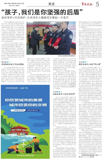 “公安机关聚焦未成年人保护和安全问题新形势,在净化成长环境上持续发力,推动构建未成年人保护新格局。今年以来,涉未成年人违法犯罪的案件数和作案人数同比分别下降47%、21%,取得“双下降”的良好成效。”市公安局黄岛分局泊里派出所一级警长、泊里镇未保站法治副站长董聚建表示,围绕为未成年人创造安全、健康的成长环境,公安机关将加大对中小学校周边治安环境和文化娱乐场所的整顿力度,依法严管易滋生违法犯罪的行业场所,有效挤压违法犯罪活动空间,形成高压严管震慑。同时,依托警校共建机制,发挥“法治副校长”的作用,组织社区民警常态化进校园,提高青少年辨别、预防违法犯罪的意识和能力。