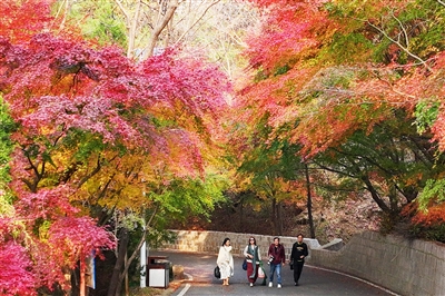 深秋,在通往北九水的路上,漫山枫叶已红透了脸颊。崔超 摄