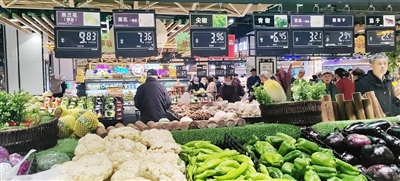 记者探访前海利群、悦喜客来等超市发现,两元菜再次回到市场上,种类也越来越多。周日上午,记者在中山路悦喜客来超市看到,蔬菜区域柜台上摆满了新鲜的蔬菜,2元菜正在成为主力军。小油菜2.3元/斤、茄子2.2元/斤、大头菜2.3元/斤、精品长南瓜2.6元/斤、大白菜2.4元/斤。还有部分蔬菜价格已降至2元/斤以下,玻璃翠芹菜1.7元/斤、冬瓜1.5元/斤、胡萝卜1.9元/斤、水果萝卜1.7元/斤、刺黄瓜1.6元/斤。悦喜客来超市蔬菜区域工作人员介绍,今年青岛本地蔬菜迎来丰收,近期蔬菜大量上市,因此价格不断下降。记者在现场看到,由于菜价较低,市民的采购量也随之增大。市民李先生一次性买了三棵大白菜。“现在气温低了,蔬菜也好存放,可以一次多买几棵放在家里。”李先生说。