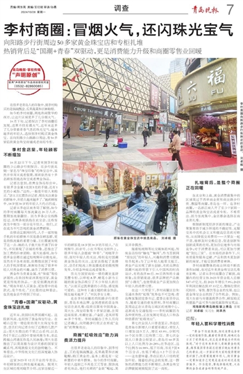 10月下旬,记者探访了李村商圈后发现,这里不仅有烟火气,近年来还多了几分带着青春气息的珠光宝气:越来越多的年轻人,选择到李村购买黄金珠宝。在向阳路少山路路口周边,有50多家临街黄金珠宝商铺或者商场专柜。