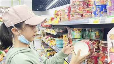 前来帮忙的小业主在查看商品保质期。