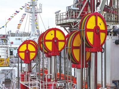 为此,“梦想”号配制了全球首台兼具油气勘探和岩心钻取功能的液压举升钻机,顶驱的举力达到907吨,具备4种钻探模式和3种取心方式,可满足大洋钻探取心和深海大洋矿产资源勘探开发等不同作业需求,综合钻探效率、硬岩钻进能力大幅提升,钻采系统国际领先。