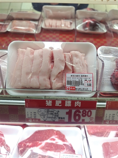 超市在售的肥膘肉。