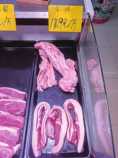 猪肉摊位都有肥膘肉在售