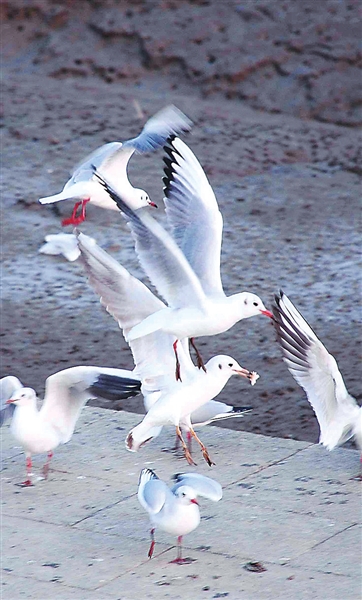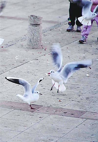 那么,该如何正确喂海鸥呢?投放馒头等食品时,千万不能用变质食物,否则容易引起海鸥肠胃疾病;推荐喂食海鸥的时间为上午9时至11时、下午2时至5时,随时喂食有可能造成海鸥消化紊乱;喂鸥时应以抛喂为主,避免过多的饲料掉入水中,饲料在水中浸泡积累会对水质造成污染。徐立强还补充道,“市民尽可能不要大声喧哗,也不要穿着红色、紫色等艳丽衣服,这可能会对鸟类形成干扰。”