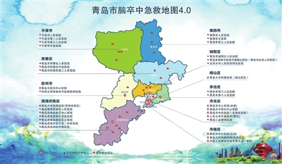 脑卒中具有发病率、复发率、致残率、死亡率和经济负担“五高”的特点,是威胁我国国民健康的主要慢性非传染性疾病之一,也是导致我国居民死亡的前三位病种之一。青岛市自2010年开始,着力打造区域卒中防治体系,通过发挥辖区头部医院专科优势,辐射带动全市具备能力的医疗机构开展溶栓、取栓治疗,努力保障群众健康。2017年6月,青岛市1.0版卒中溶栓地图正式发布。期间,结合医疗机构能力提升不断调整更新地图功能。4.0版卒中地图在前三版的基础上,增加了4个市级及以上卒中中心、73个卒中防治单元、176个卒中防治点和11个120卒中急救站点,与国家版卒中急救地图接轨,实现实时导航功能,并具备卒中识别与宣教功能。同时,通过市级质控平台,对联网卒中中心、卒中单元、卒中站点以及家医团队开展的卒中筛查与转运接诊等数据开展质控,实现对患者全生命周期管理指导。卒中地图还可以为群众根据自身疾病轻重缓急或者从预防角度需要,精准选择最佳的救治路径,进一步提升了脑卒中患者救治效率,同时注重了疾病宣教防治。这一举措对于加快健全全市脑卒中防治体系、提升医疗机构防治水平、提高群众健康素养、降低发病率起到积极作用。