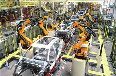 现代化的汽车生产线。