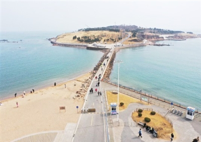 崂山区持续提升沿海一线景观品质,打造特色风貌,开展小麦岛入岛景观带(麦岛路-小麦岛)、黄金海岸绿地提升等项目,挖掘城市特色,打造“网红”地标。小麦岛入岛景观桥以“风吹麦浪桥”为总体设计理念,自空中俯瞰,桥和岛完美融合,宛如一把以主岛为琴身、桥梁为琴颈的巨型“吉他”,体现出城市的海洋底色和浪漫特质。
