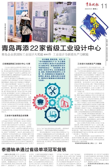 近年来,青岛强化平台载体建设,加大人才引进培育力度,持续推进工业设计与制造业发展深度融合,制造业设计创新能力不断提升。今年,青岛市新增省级工业设计中心22家;在“省长杯”工业设计大赛中,青岛参赛单位斩获70余项奖项。截至目前,青岛市累计培育国家级工业设计中心10家,省级工业设计中心55家;累计获得中国优秀工业设计奖13项,获得红点奖、IF奖等国际工业设计大奖超400件,连续三年跻身全国先进制造业百强城市第7位。