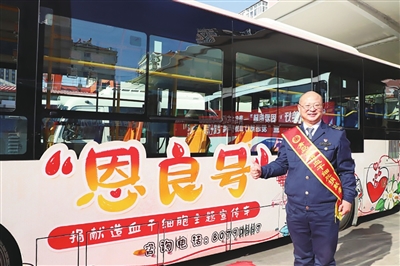 在揭牌仪式的热烈氛围中,一辆经过精心打造、焕然一新的公交车缓缓驶入大家的视线,它就是全国首辆造血干细胞捐献主题宣传车——“恩良号”。经过全新换装后的“恩良号”,车身设计更加精致,宣传标语更加醒目,宛如一道亮丽的风景线,穿梭在城市的大街小巷,传递着生命的希望与爱的力量。作为闻名岛城的流动宣传阵地——“恩良号”的驾驶员,崔恩良也来到活动现场,与在场的公交志愿者、无偿献血志愿者、造血干细胞捐献者代表并肩而立,共同宣誓:“我们深知,无偿献血和造血干细胞捐献是挽救生命、传递希望的光辉事业。我们承诺,将依托教育实践示范基地这一平台,广泛宣传无偿献血和造血干细胞捐献的知识,让更多的人了解、认同并积极参与这一崇高事业。”