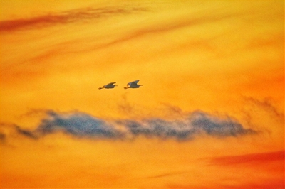 退休后刘祖青在崂山区王哥庄街道会场村租了个别墅做民宿,安享晚年生活,每天拿出大把的时间拍摄。“我就在院子里,阳台上拍日出日落、山里的鸟儿,还有村民的生活状态。偶然间发现,这边一年四季都有白鹭,它们现在已经不是候鸟,而成为留鸟了。这群白鹭每天都是固定的路线,清晨日出之前,会有几群白鹭从北向南飞,从即墨方向飞过村子,向崂山飞去。傍晚日落的时候,又从南向北飞回,每天都是一个来回。摸清楚了规律,我现在几乎每天清晨都会去阳台等候白鹭,有时候注意力不集中,一眨眼的工夫鸟群就飞过去了。”他在观察生活时,发现了这群白鹭的踪迹。