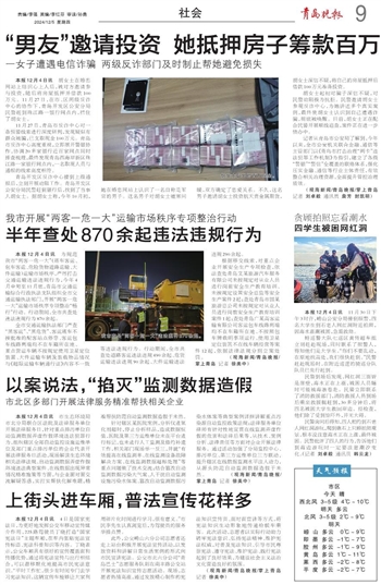 本报12月4日讯 为规范我市“两客一危一大”(班车客运、包车客运、危险货物道路运输、大件运输)运输市场秩序,严厉打击交通运输违法违规行为,今年4月中旬至11月底,青岛市交通运输综合行政执法支队组织全市交通运输执法部门,开展“两客一危一大”运输市场秩序专项整治“畅行”行动。行动期间,全市共查处违法违规行为870余起。