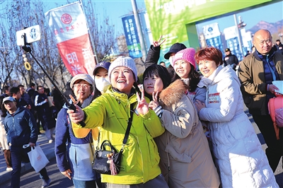 不少选手在终点的打卡点拍照留念。