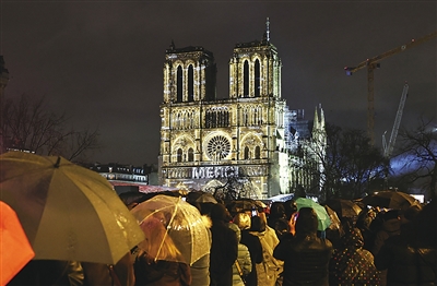 据新华社巴黎12月7日电 法国7日晚在位于塞纳河畔的巴黎圣母院举行仪式,庆祝2019年失火的巴黎圣母院经过5年修复后重新开放。