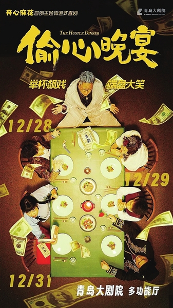嗨吃嗨玩过戏瘾,《偷心晚宴》邀请观众一起欢乐迎新年。顶级富商办寿宴,不料儿女各有心事,一顿宴席鸡飞狗跳……《偷心晚宴》是由开心麻花打造的戏剧+互动+餐饮的沉浸式喜剧,这场戏剧创造性地引入了沉浸式体验,并将“互动”“美食”这些因素融入戏剧,让观众获得非同寻常的体验。12月28日、29日、31日,到青岛大剧院多功能厅,开心迎新年。