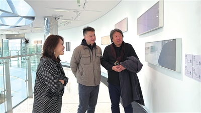 吴健(左)与田卫在海信艺术中心。