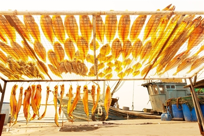 又到了渔民晾晒鱼干的好时节。初冬,步入青岛市崂山区王哥庄街道的港东码头,肥美的甜晒鲅鱼、呲牙咧嘴的鲈鱼、个头适中的偏口鱼……齐齐整整地摆放在晾晒架上,接受阳光“烹饪”,它们撑起了整个青岛冬季的海味。