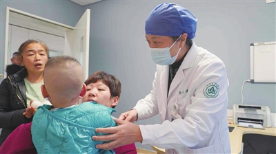 赵海光(右一)为患者仔细检查。管浩然 摄
