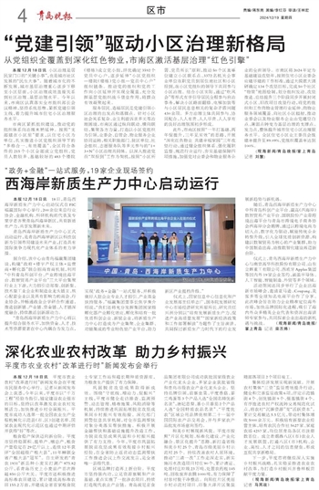 本报12月18日讯 小区治理是居民家门口的“关键小事”,也是城市社区发展的“民生大事”。随着城市化的不断发展,城市基层治理重心逐步下移至小区层面,小区治理成效直接关系到社区治理、基层治理水平。今年以来,市南区认真落实全市组织部长会议精神,坚持系统思维,紧抓党建引领主线,着力提升城市住宅小区治理服务水平。