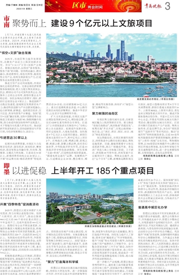 市南区聚力强化城市品质,在彰显城区魅力上纵深突破求实效。着力推进“前海后海联动”,纵深推进“西提东优”,统筹实施“多点并进”,实现山海湾城一体打造,让“湾区、街区、园区、社区、城区”特色更加彰显。