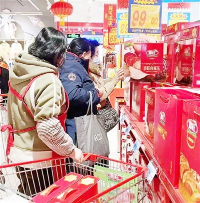 消费者在选购喜旺礼盒。(企业供图)