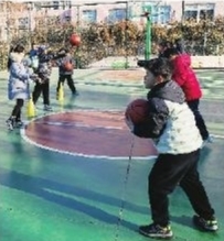 青岛宁安路小学寒假托管室外活动。