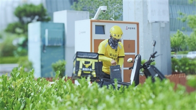外卖骑手正在使用中国铁塔换电服务。(铁塔供图)