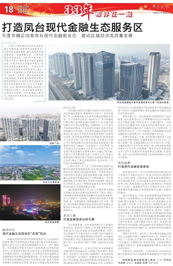 明晰产业布局。在区划上,凤台现代金融生态服务区以金融街为核心,辐射形成中心区、拓展区、延伸区三大区域,旨在建立以金融业聚集发展,助力“五区建设”为重要目标,具有代表性、示范性的现代金融生态服务区,发挥金融赋能现代服务业等实体经济的效应。