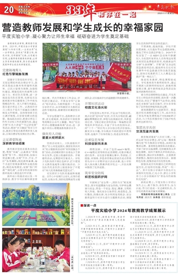 奋楫扬帆启新程,赓续前行绽芳华。2024年,平度实验小学紧紧围绕“六年好习惯,一生好品质”这一办学理念,坚持走“质量立校、特色兴校、名师强校”之路,以党建为引领,让教师感受教育的幸福,让学生享受幸福的教育,努力营造教师发展和学生成长的幸福家园。