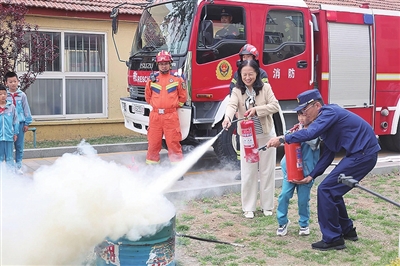 胶州消防组织小学师生参加消防安全培训。