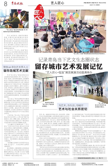 “艺人匠心”项目设置报刊专题刊发、新媒体纪录短片播放、展览、座谈等板块内容,以多元艺术形式记录青岛艺术的多样性和发展性,从多个角度表现艺术之城建设的主题,强化文化特质与城市人文形象。通过对多元艺术成果深度解析,引发更大范围内对于促进艺术创新创造,推动艺术与产业结合的社会思考。